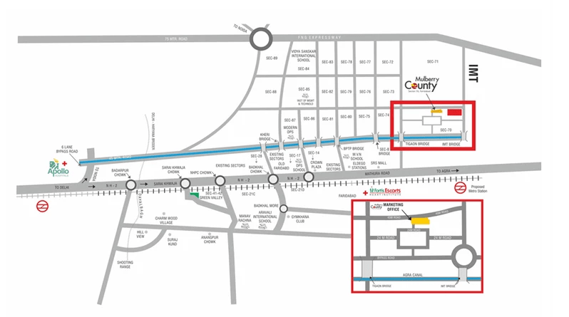 Mulberry County is surrounded by lush green landscapes and parks with paved walkways. These residential apartments in Faridabad are strategically located in Sector – 70 of Faridabad and are adjacent to IMT Faridabad. Mulberry is a sublime mix between modern amenities coupled with ample amounts of nature surrounding it. At MGH we believe that life must be enjoyed in the cusp of nature and there is no other project that emanates this fact as good as Mulberry County.